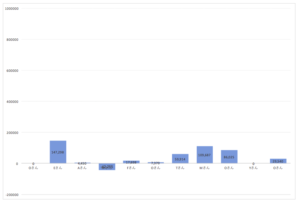 こちらのオレンジのグラフが燃え尽きろ!期間の、参加者の利益額です。