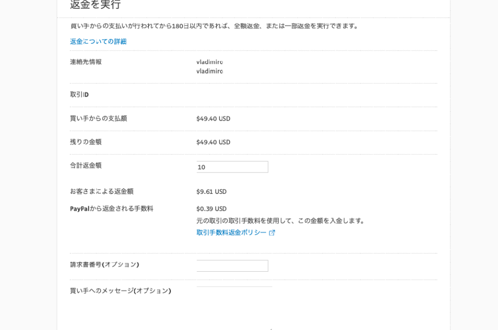 paypalを利用するわけは、ebay管理画面からは一部返金ができないからです。