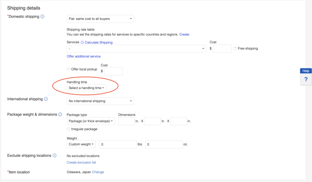 ハンドリングタイムは、商品を出品する際、送料設定の画面で指定する事になります。