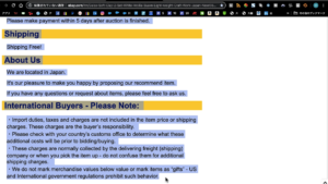 F/S(送料無料)や、Japan、新品であることを伝えるNewなどの言葉は右側に配置しましょう。