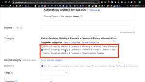 今回の出品するふわっと軽いねんどは、人気もあり売れやすい商品なのでCountry/Region of Manufactureの項目だけ入力をしました。