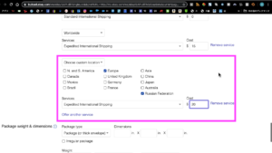 南米やアフリカはebayのシェアも少なく、郵便事情もあまりよくありません、さらに送料も高いので設定が複雑になります。以上のことから、初心者のうちは発送を除外してもいいのではないか、というご提案です。