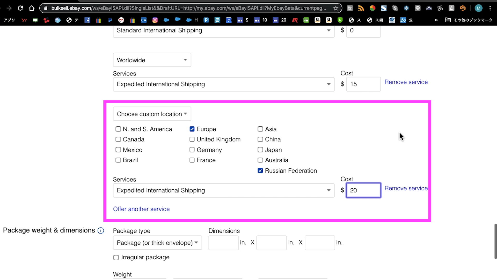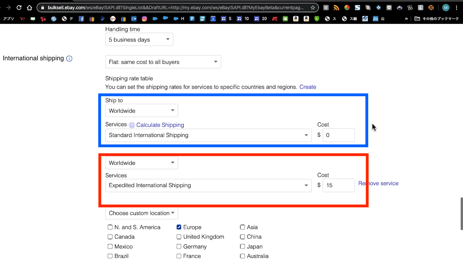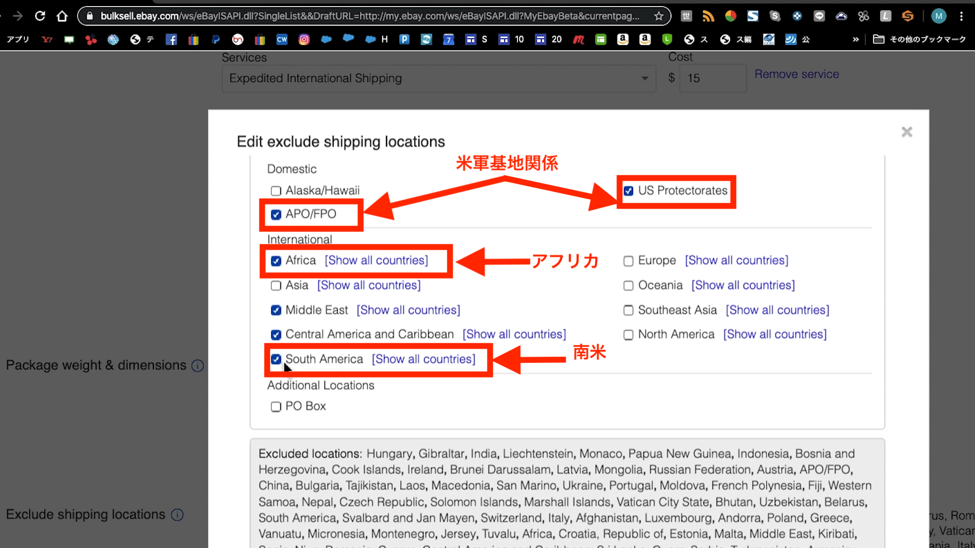 南米やアフリカはebayのシェアも少なく、郵便事情もあまりよくありません、さらに送料も高いので設定が複雑になります。以上のことから、初心者のうちは発送を除外してもいいのではないか、というご提案です。
