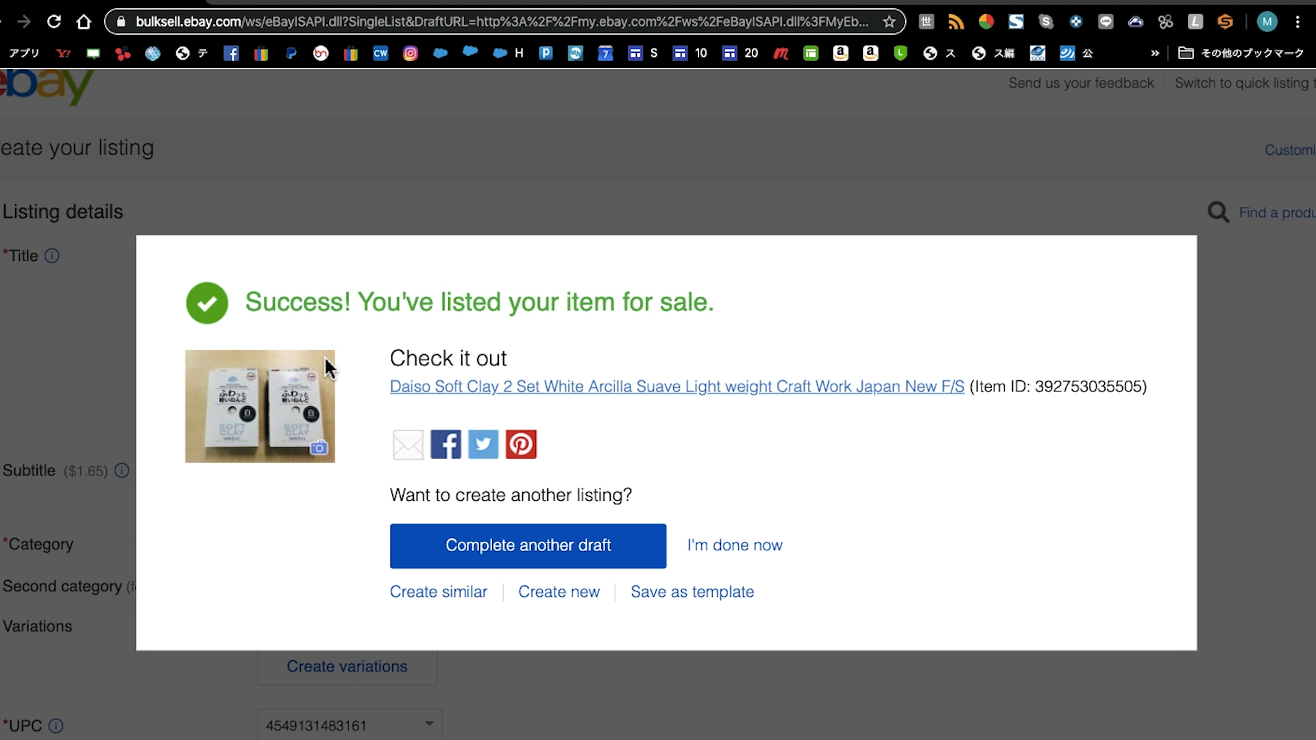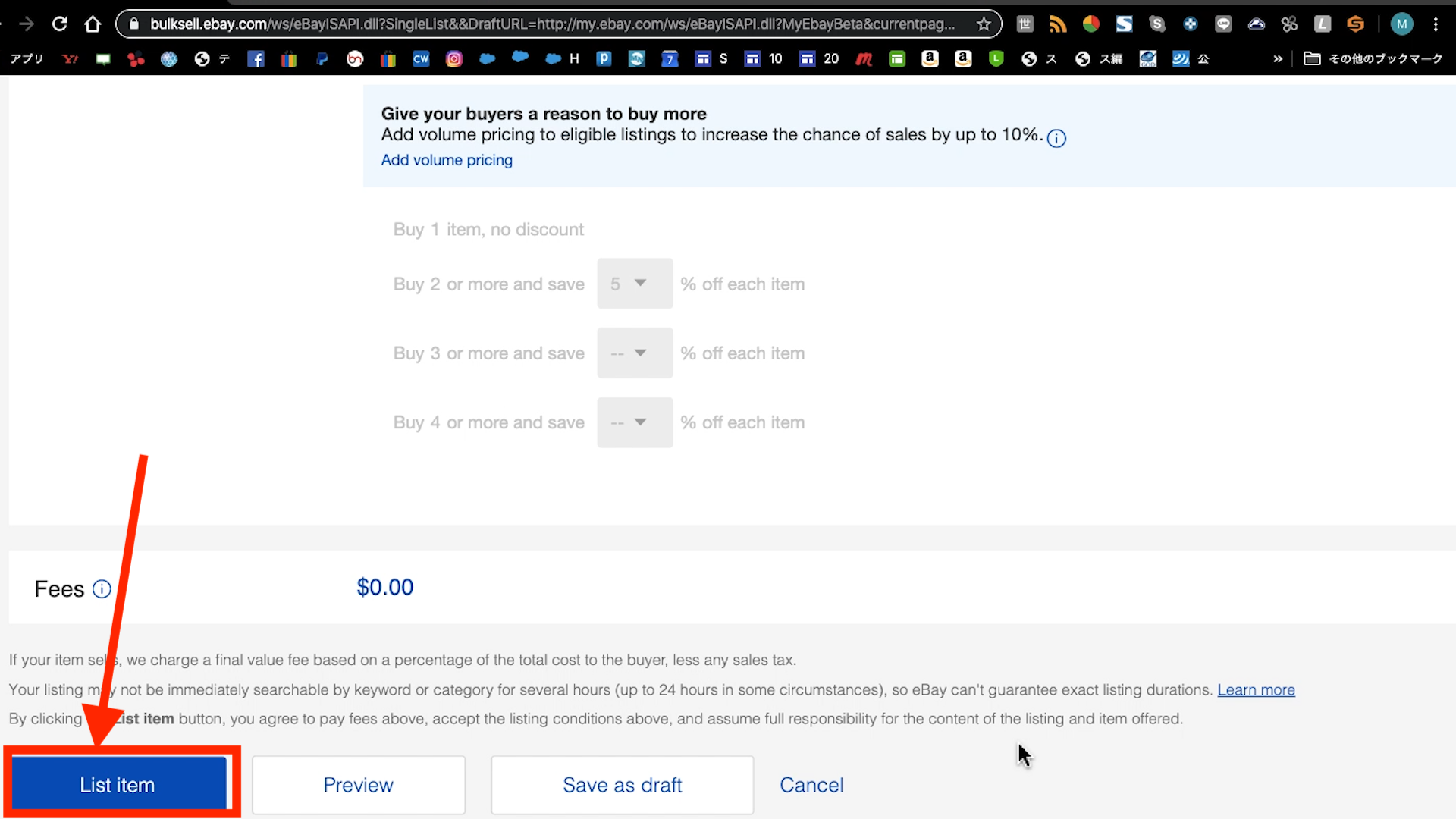 これで全ての入力が完了しましたので、List itemをクリックすると出品は完了です。