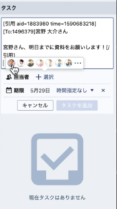 なので、ある程度の人数がいるチャットの中で自分だけのタスクを自分だけの都合で貼りまくるということはしない様にしましょう。
